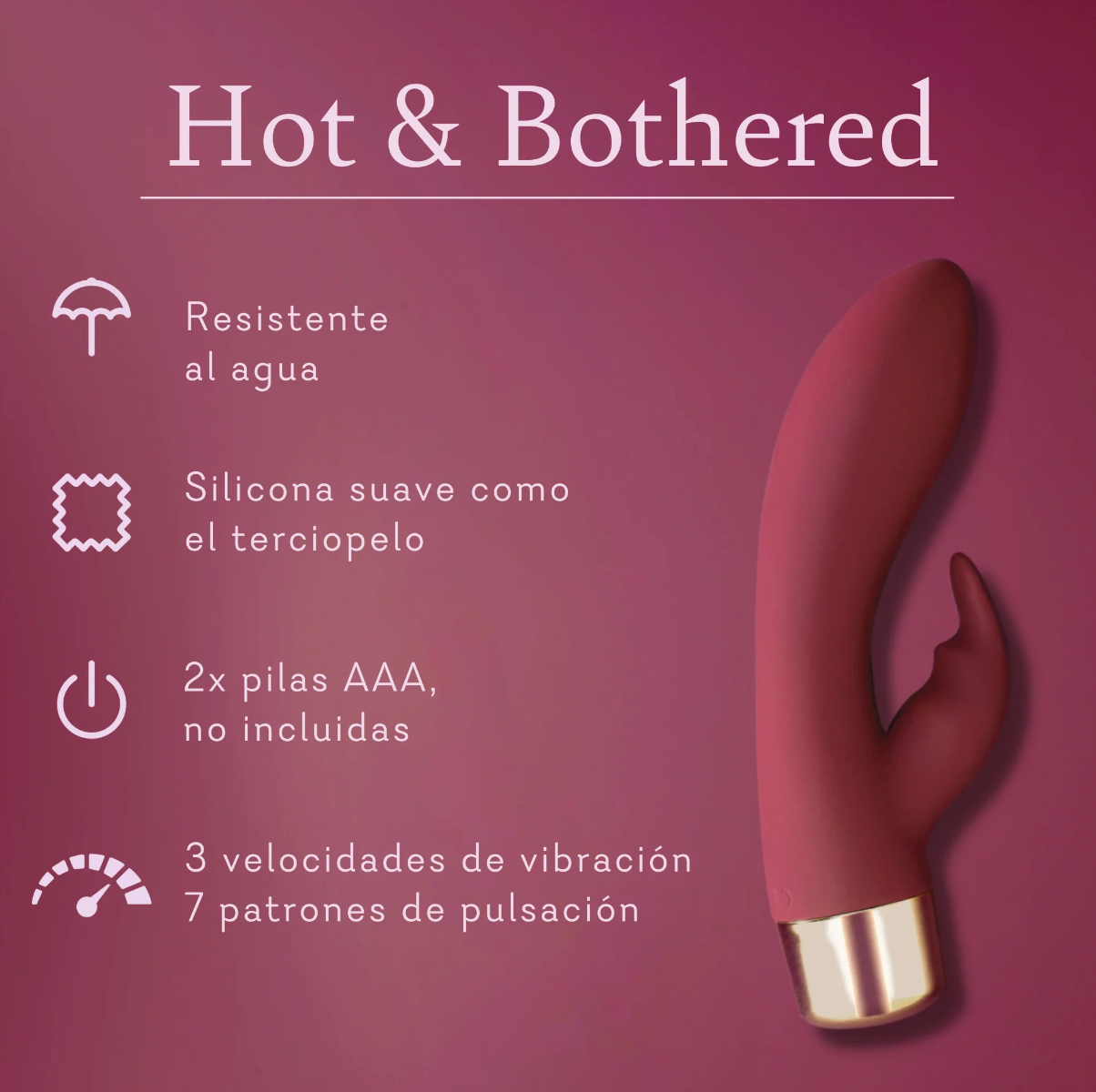 ¡Lo quiero, lo necesito, lo tengo! Hot & Bothered es un vibrador de doble acción que está destinado a convertirse en el mejor amigo de tu dormitorio. Esta belleza de silicona tiene un eje voluptuoso y un masajeador de clítoris texturizado para una doble dosis de sensación satisfactoria.