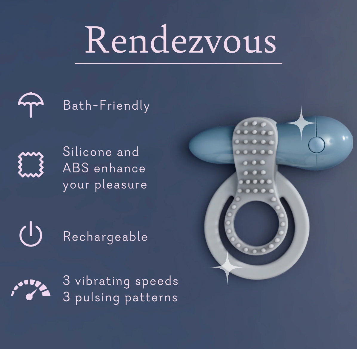 Conviértalo en algo inolvidable con Rendezvous, un juguete versátil con 6 velocidades de vibración y patrones de pulsaciones. ¡Usa la bala sola para una sensación tentadora en cualquier lugar que desees o haz que tu pareja se divierta con los anillos dobles! Solo o dúo, prepárate para un éxtasis abrumador.